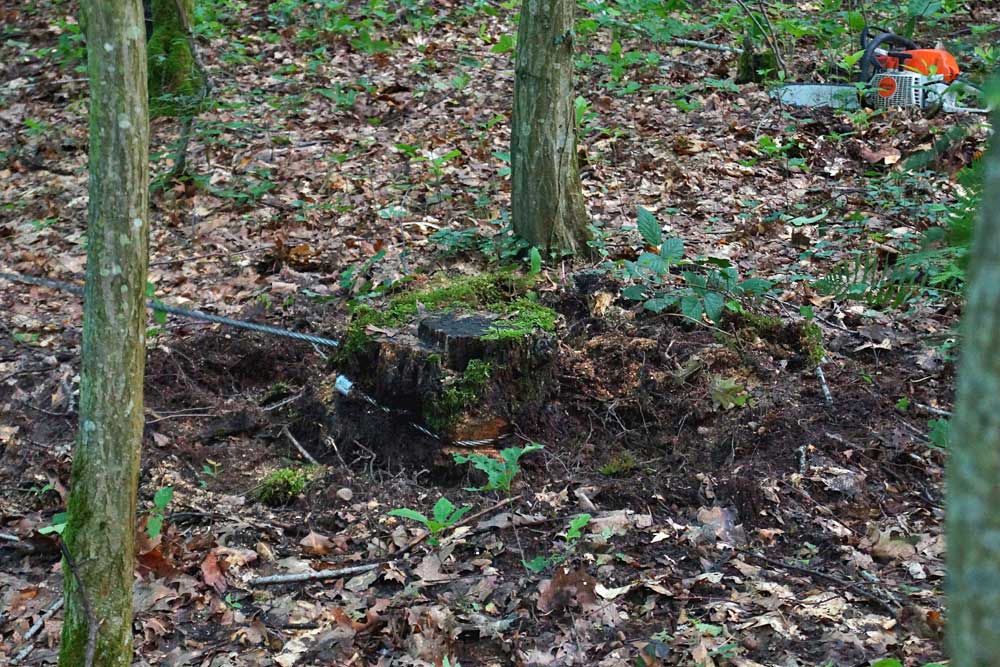 Um zu prüfen, ob die amerikanische Roteiche (Quercus rubra) als Brutsubstrat für den Hirschkäfer geeignet ist, wurden im Juni 2016 zehn Roteichen-Stubben maschinell umgezogen. Die ausgewählten Wurzelstöcke waren von Wildschweinen umwühlt, dies ist ein guter Indikator für das Vorhandensein von großen Käferlarven. Das untersuchte Gebiet liegt westlich der Stadt Freiburg in den sogenannten "Mooswäldern". Bei der untersuchten Fläche handelt es sich um ein lockeres bis geschlossenes Roteichen-Baumholz (∅ 30,5 cm BHD) aus Erstaufforstung mit teilweise beigemischten Robinien in Randlage und einer Größe von annähernd 30 ha. Die letzte Auslesedurchforstung wurde im Winter 2013/2014 durchgeführt.