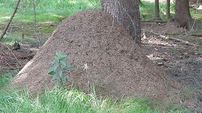 Den Kern eines Ameisenhaufens bilden oftmals alte Wurzelstöcke von Nadelhölzern oder Eichenstämmen.