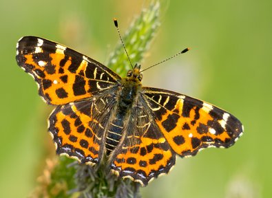 Daneben spielen für die Sommerfalter auch blütenreiche Wiesen als Saughabitate eine ganz wichtige Rolle. Wer also zumindest entlang von feuchten und schattigen Waldrändern Blühwiesen teilweise belässt oder möglichst spät mäht – optimalerweise erst nach der zweiten Faltergeneration Ende August – der hilft dem Landkärtchen und auch vielen anderen Arten sehr.