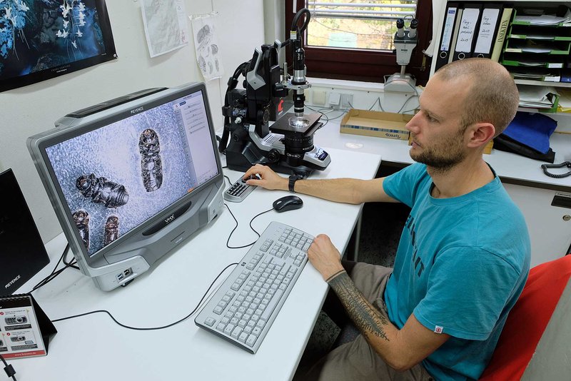 Abb. 5: Jonas Hinze am digitalen Mikroskop.