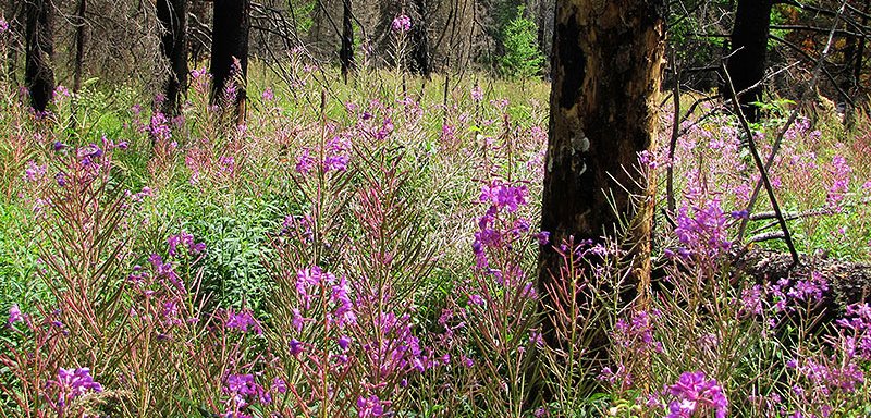 Abb. 1: Waldlweidenröschen auf einer Brandfläche in der Dunklen Taiga / Mongolei (Foto: H. Bußler).