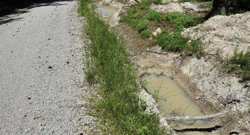Wassergefüllte Fahr- und Rückespuren sind für Amphibien, allen voran für die Gelbbauchunke, wichtige und häufig die einzigen Laichgewässer im Wald.