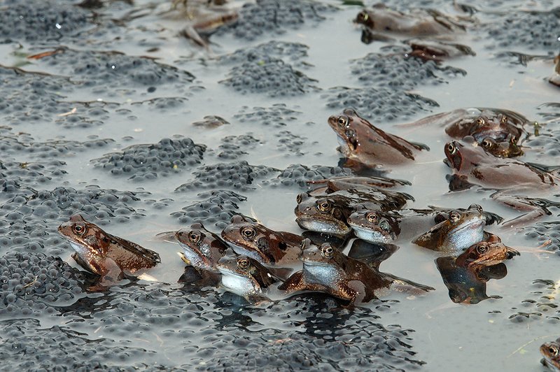 Abb. 3: Von vielen Weibchen abgelegte Laichballen bilden einen Laichteppiche (Foto: A. Meyer, DGHT).