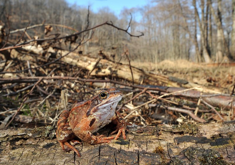 Der Grasfrosch ist unsere am weitesten verbreitete Amphibienart und in Deutschland vergleichsweise noch häufig anzutreffen. Er wandert im zeitigen Frühjahr zu seinem Laichgewässer und verbringt die Landphase weitestgehend in dichter Gras- und Krautvegetation im Offenland und lichten Wäldern. Veränderungen in Feld und Flur, insbesondere die Intensivierung der Landwirtschaft und Zerschneidung von Habitaten machen dem sonst so anspruchslosen Lurch aber zu schaffen. Eine zunehmende Abwanderung der Grasfrösche in die weniger beeinträchtigten Lebensräume der Wälder ist die Folge. Dem Wald fällt daher eine zunehmend wichtigere Rolle als Habitat zu.