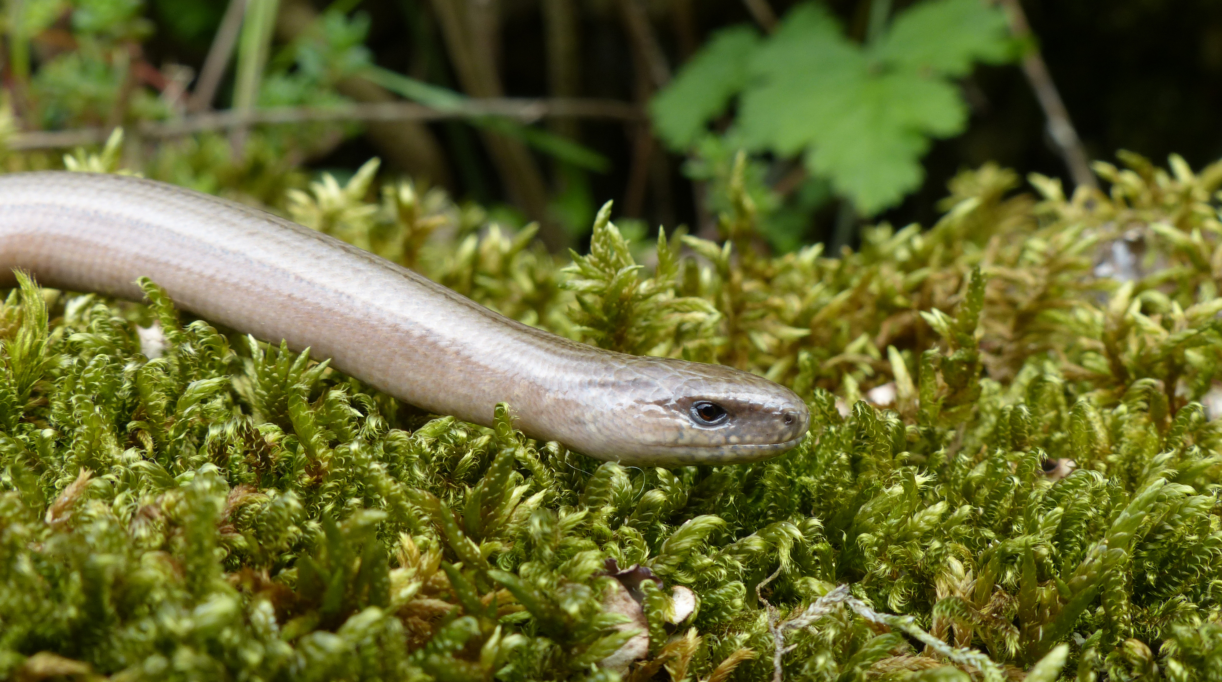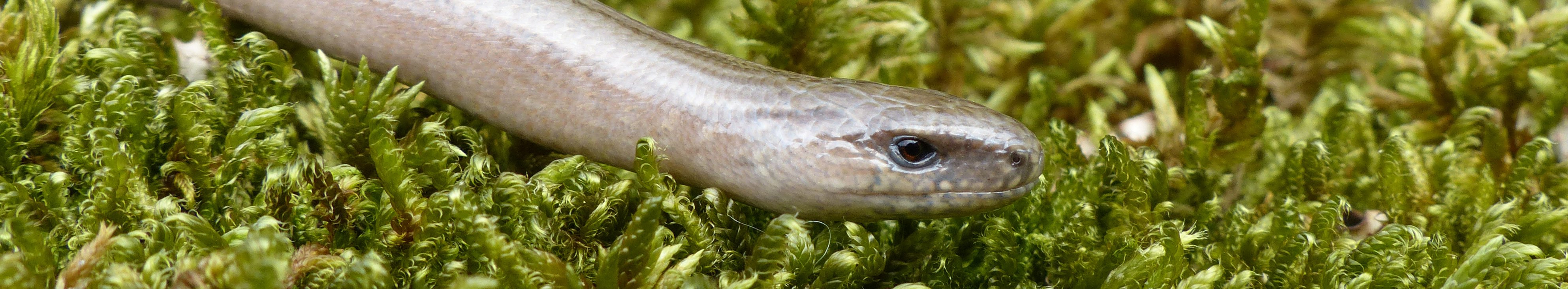Abb. 2 - Im Gegensatz zu Schlangen können Blindschleichen ihre Augenlider schliessen und blinzeln. Foto: Thomas Reich (WSL)