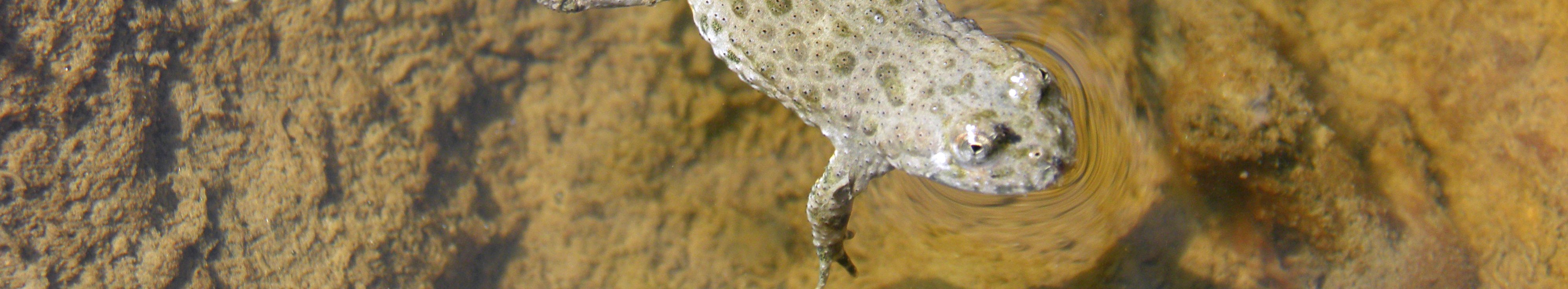 Durch die Pflege und Schaffung von künstlichen Kleinstgewässern könnten Waldbesitzerinnen und Waldbesitzer der Unke also sehr effektiv helfen. Da die Gelbbauchunke konkurrenzschwach ist, profitiert sie davon, wenn ihre Laichgewässer immer wieder austrocknet und so eine Etablierung anderer Arten verhindert wird. Andererseits müssen die Kleinst-Gewässer zumindest so groß sein, dass sie nicht austrocknen, bevor sich die Larven darin fertig entwickelt haben. Die Unke durchläuft die Entwicklung vom Ei bis zum "fertigen" Amphibium in einer sehr kurzen Zeit von zum Teil nur 4 bis 6 Wochen. Kleinste Gewässer von nur einem Quadratmeter Größe und einer handbreiten Wassertiefe können bereits als Laichgewässer geeignet sein (Abbildungen 5 und 6).