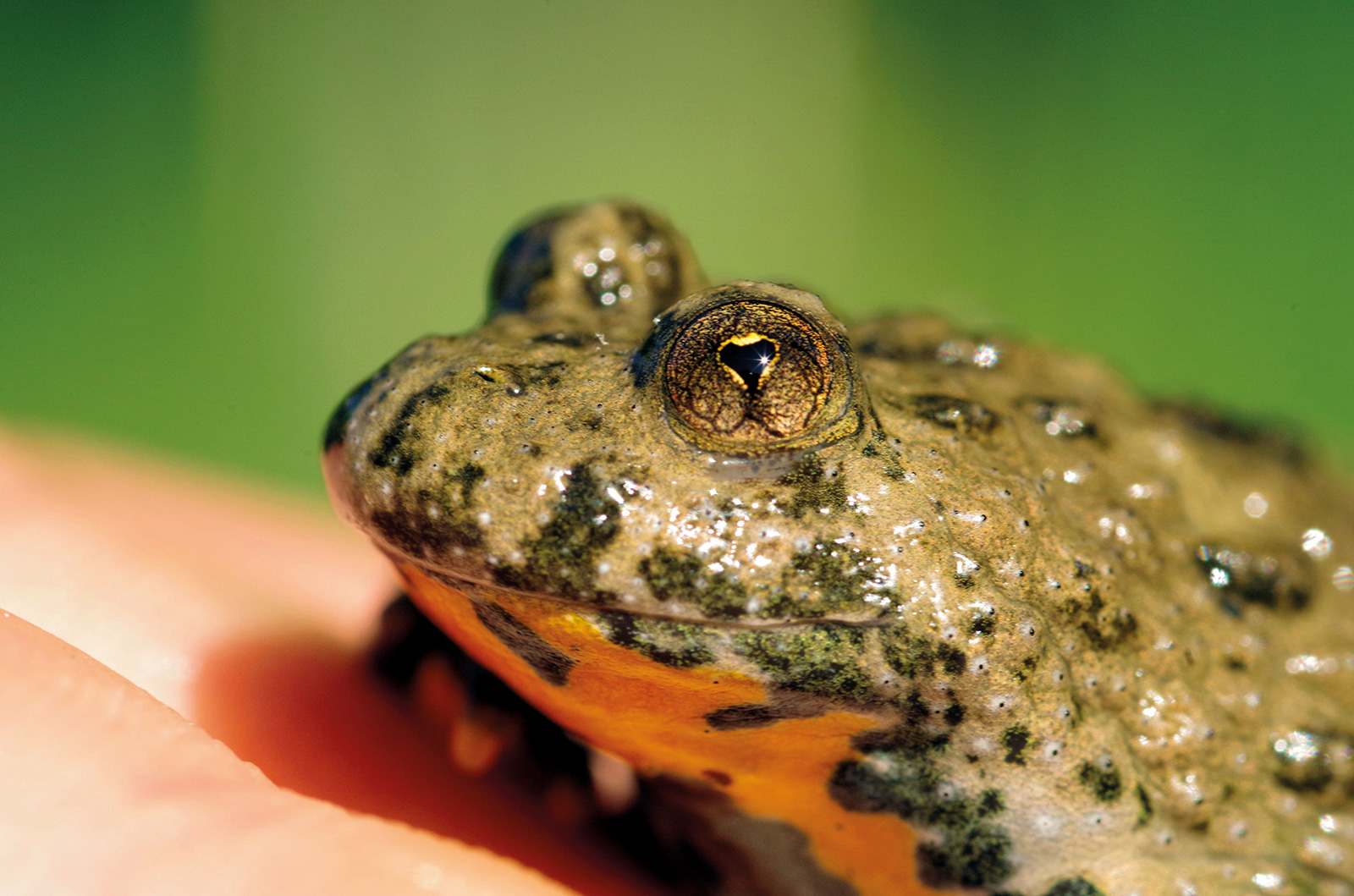 Die überwiegende Zeit im Jahreslauf verbringen die meisten Amphibien – so auch die Gelbbauchunke – an Land. Umso wichtiger sind daher neben geeigneten Laichgewässern und Aufenthaltsgewässern auch entsprechend strukturreiche Landlebensräume in der direkten Gewässerumgebung. Ideal sind laubbaumreiche Wälder mit einer lichten Kraut- und Strauchschicht und einer Vielzahl an Unterschlupfmöglichkeiten. Liegendes stärkeres Totholz, Ast- und Steinhaufen, Wurzelstöcke und Kleinsäugergänge sind gute Tagesverstecke und Überwinterungsquartiere. Waldbesitzern und Forstleuten bieten sich also auch bei der Gestaltung des Landhabitats viele Möglichkeiten, dem kleinen, gefährdeten Lurch "auf die Sprünge" zu helfen.