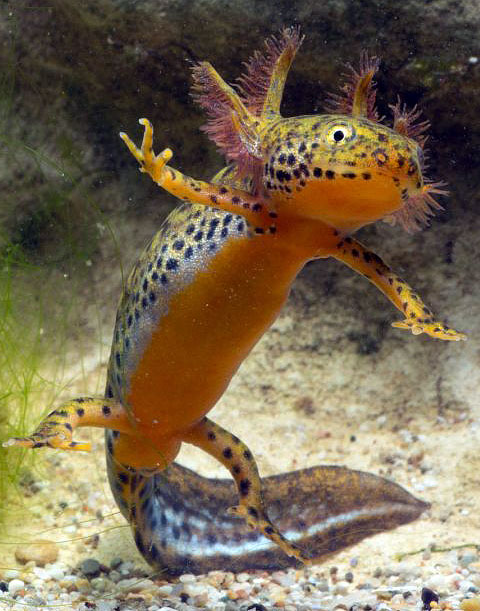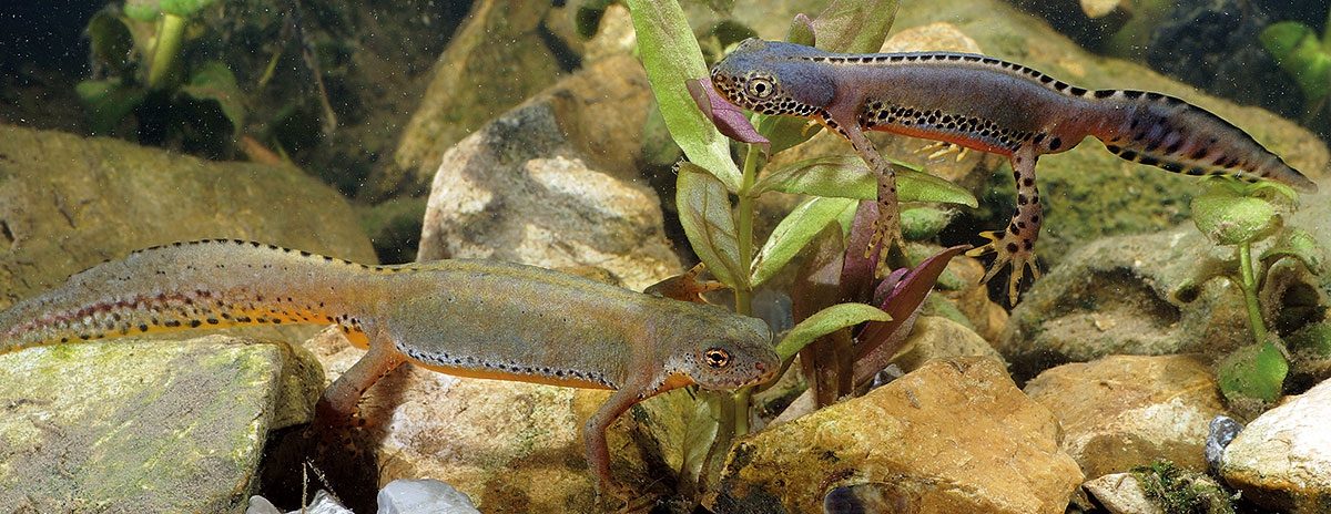 Der Bergmolch (Ichthyosaura alpestris) ist unsere attraktivste Molchart. Zumindest im Frühjahr, wenn er seine "Wassertracht" angezogen hat, mutet er tropisch an. Der Lurch des Jahres 2019 ist unsere zweitgrößte Molchart, in Mitteleuropa weit verbreitet und vielerorts ein Tier des Waldes.