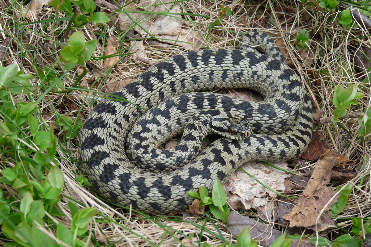 In der Schweiz kommen zwei giftige Schlangenarten vor: die Kreuzotter (Abb. 1) und die Aspisviper. Sie leben in den Alpen und lokal im Jura. Trotz ihrer potentiellen Gefährlichkeit sind die heimischen Giftschlangen im Grunde genommen harmlos, weil sie fast immer vor Menschen fliehen. Eine Schlange, die unbeweglich liegen bleibt, hat den Störenfried noch nicht bemerkt oder verlässt sich auf ihre Tarnung. Wenn man Kreuzottern und Aspisvipern in Ruhe lässt, so beissen sie nicht. Eine gewisse Gefahr besteht allerdings beim Pflücken von Blumen und Beeren oder beim Barfusslaufen, denn Schlangen sonnen sich oft gut versteckt und werden dabei leicht übersehen. Wer gebissen wird, sollte Ruhe bewahren. Nicht bei jedem Biss wird Gift injiziert, und nach Giftbissen sind die Konsequenzen bei umgehender Behandlung im Spital meistens gering.