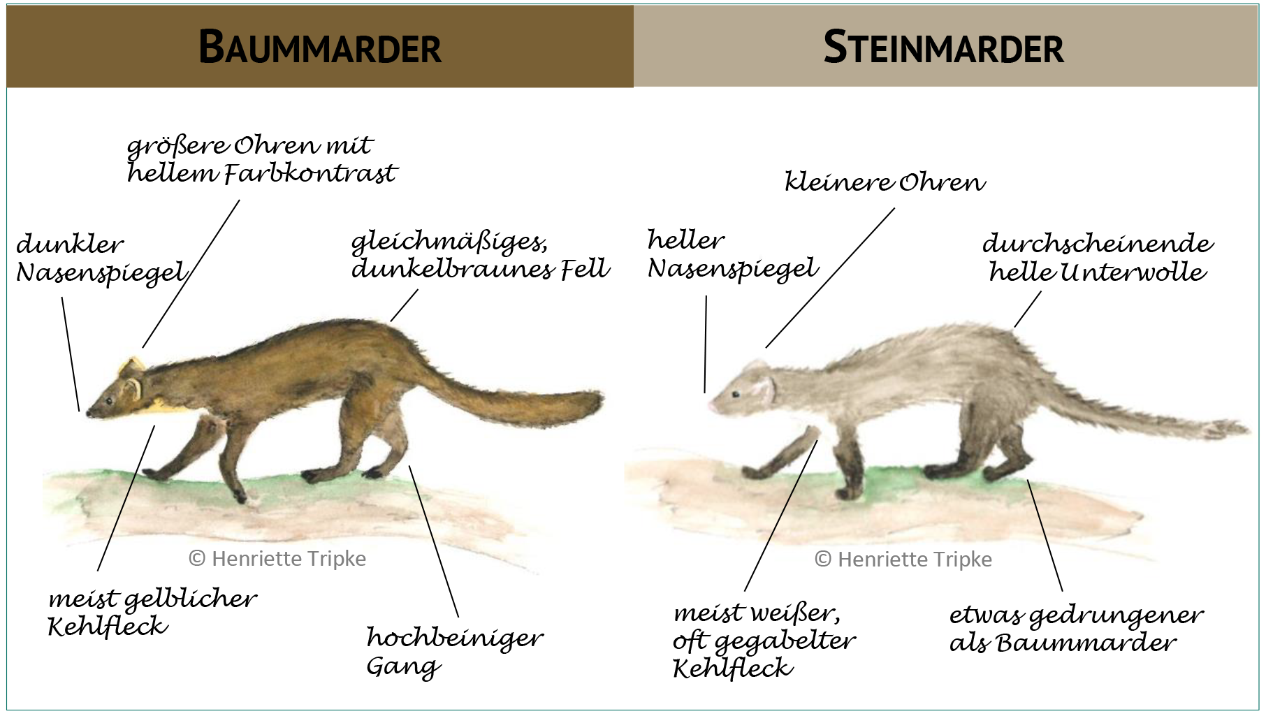 Die beiden Marder können anhand einiger Merkmale voneinander unterschieden werden