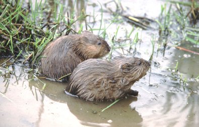 Der Bisam schaffte den Weg von Amerika nach Europa erst mit Hilfe des Menschen. In der Nähe von Prag setzte Graf Colloredo-Mannsfeld 1905 die ersten Bisams in böhmischen Teichgebieten ein. Als nordamerikanische Art an strenge Winter angepasst, konnte sich der Bisam ohne weitere menschliche Hilfe flächig verbreiten. Von Tschechien aus trat er seinen Siegeszug über Mittel- und Osteuropa an. Um 1915 tauchten die ersten Nachweise am Regen in Bayerischen Wald auf und nur 20 Jahre später hatte der Bisam die Rheinauen bei Breisach erreicht. Schon bald kamen Konflikte mit Landnutzern auf. Als Minierer in Dämmen und Teichanlagen sowie als Räuber von Muschelbänken wird der Bisam in Deutschland und Frankreich bis heute als Problemtier verfolgt. In anderen europäischen Ländern ignoriert man ihn oder schätzt ihn gar als wertvolles Pelztier, das sogar den Schutz des Jagdrechtes genießt. Doch auch bei uns hat mittlerweile der Elan der Bisambekämpfung nachgelassen, zumal sie mit erheblichen Kosten verbunden ist. Doch wie ist der Bisam konkurrenzökologisch einzuwerten? Er bewohnt in Nordamerika weitgehend die gleichen geographischen Regionen, ja den gleichen Lebensraumausschnitt wie der Biber. Immer wieder kommt es vor, dass Bisams sogar die äußeren Schichten der Biberburg bewohnen und gelegentlich im Bau geduldet werden. Während der Biber einen weiteren Uferstreifen von rund 20 m entlang des Gewässers nutzt, ist der Bisam viel enger an den Wasserbereich gebunden. Im Sommer, wenn Nahrung im Überfluss vorhanden ist, überlappen sich die Speisezettel der beiden mit einer Ausnahme: der Biber ernährt sich nur von Pflanzen, während der Bisam auch tierische Kost wie Krebse oder Insekten verzehrt.