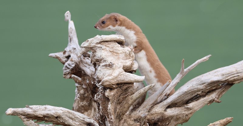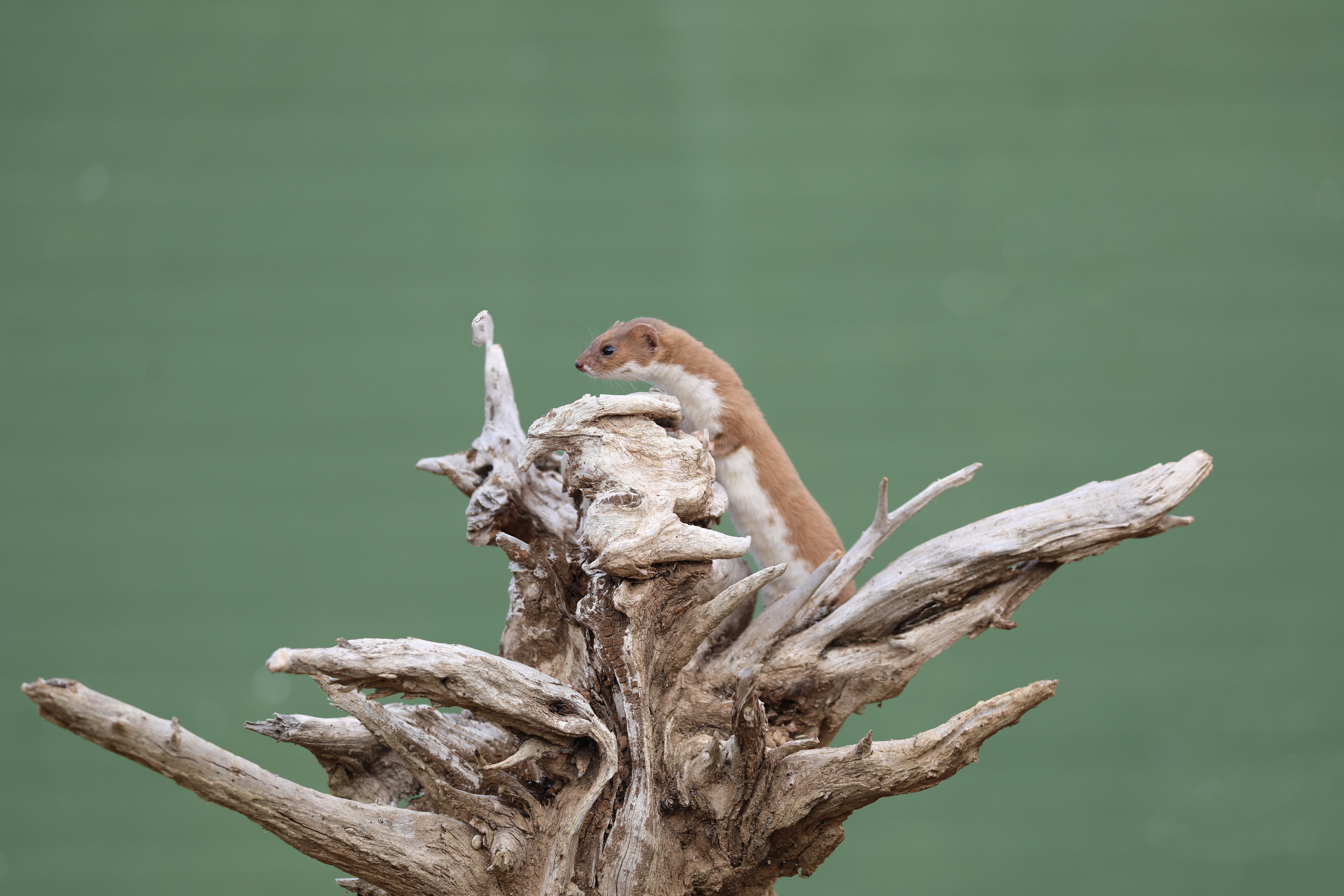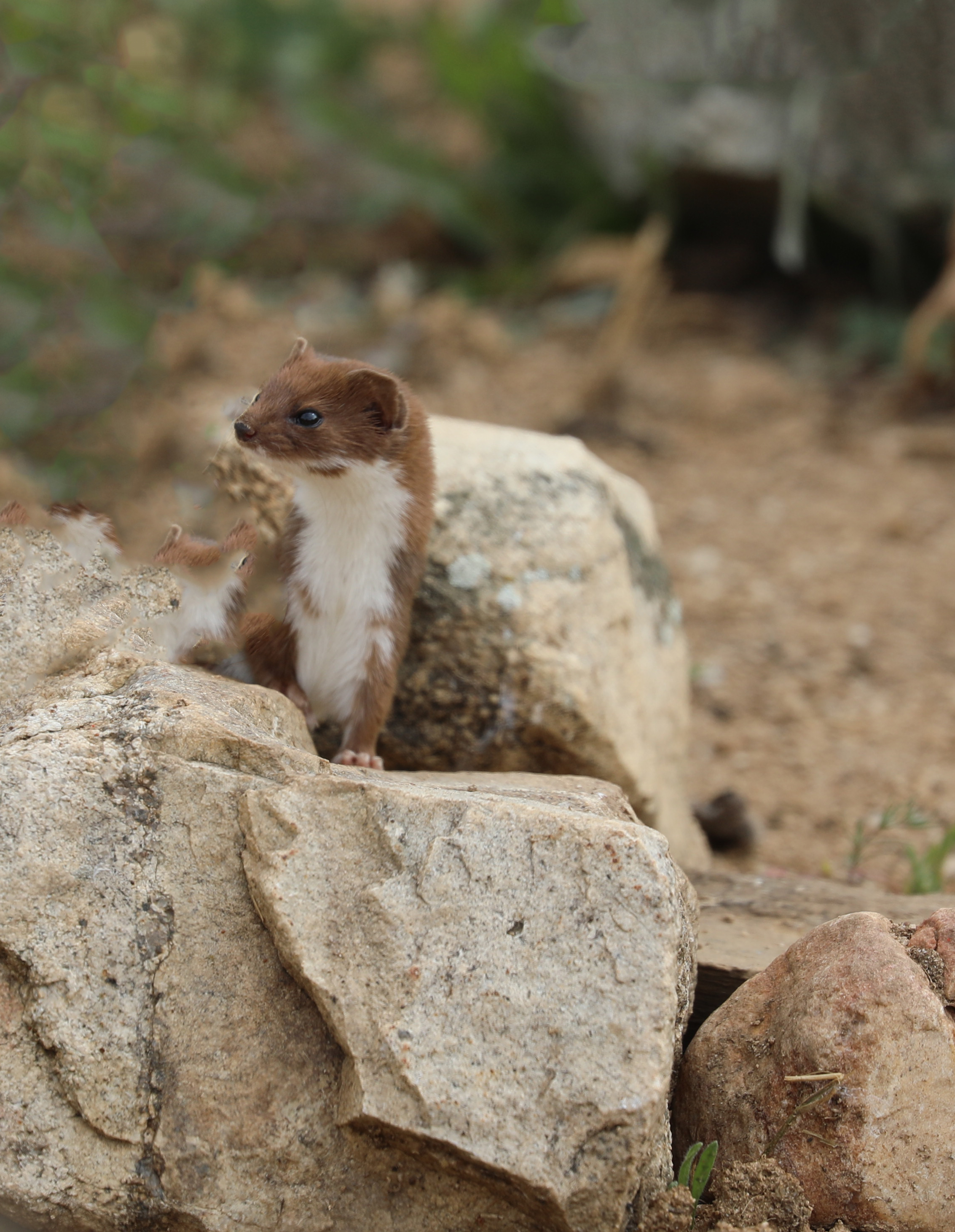 Das Mauswieselist das kleinste Raubtier in der Schweiz. Der Schwanz ist kürzer als beim Hermelin und die Spitze nie schwarz. Auch das Mauswiesel kann je nach Region in ein weisses Winterfell wechseln. Beim winterbraunen Mauswiesel ist die Trennungslinie zwischen der braunen Ober- und der weissen Unterseite meist wellenförmig. Beim winterweissen Mauswiesel hingegen verläuft die Linie im Sommerkleid wie beim Hermelin gerade.