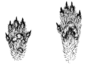 Abb. 2. Linke Vorder- und Hinterpfote. Grafik: Otto Holzgang