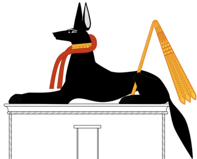Abb. 2. Anubisdarstellung als schwarzer Schakal. Zeichnung: Jeff Dahl (Wikipedia)