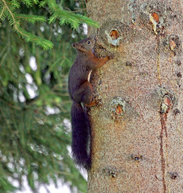 Kein Wunder, wenn gelegentlich Schäden auftreten, weil die Eichhörnchen auf Ersatznahrung umsteigen und Bäume schälen, um an das saftige Gewebe unter der Rinde heranzukommen. Überstürzte Abschussaktionen, wie sie früher gelegentlich vorkamen, waren deshalb auch hier nichts anderes als glücklose Symptombekämpfung.