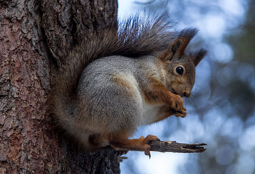 Eichhörnchen sind perfekt an das Leben in Bäumen angepasst. Sie sind flinke Kletterer: Lange Hinterbeine mit einer starken Muskulatur ermöglichen schnelles Klettern und Springen. Die langen Finger und Zehen mit den scharfen Krallen geben sicheren Halt – auch an glatten Baumstämmen. Besonders wichtig ist auch der lange, meist buschige Schwanz. Er ist mit 15 bis 20 Zentimetern fast so lang wie der Rumpf; die Eichhörnchen setzen ihn beim Klettern als Balancierhilfe und beim Weitspringen als Steuerruder ein.