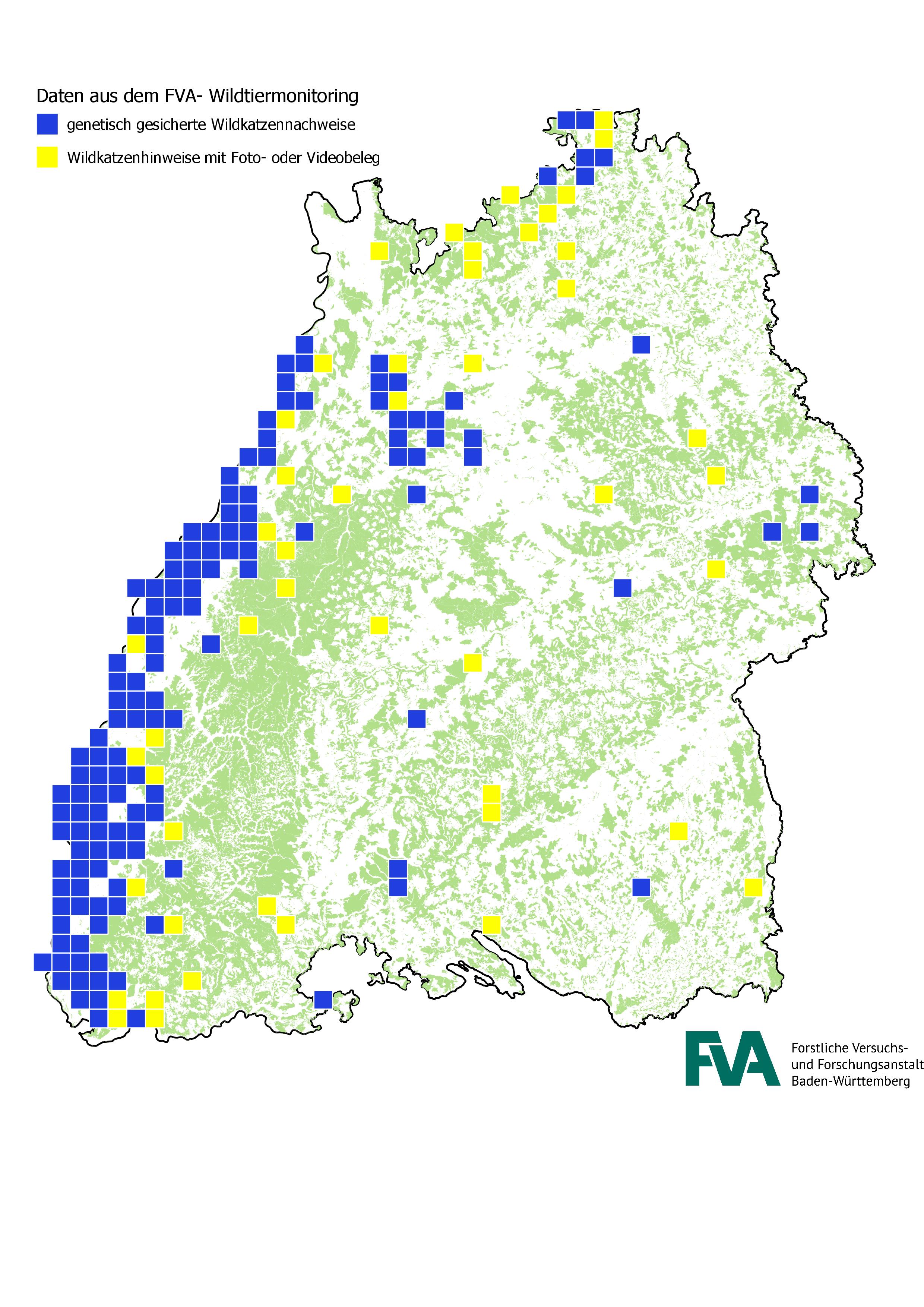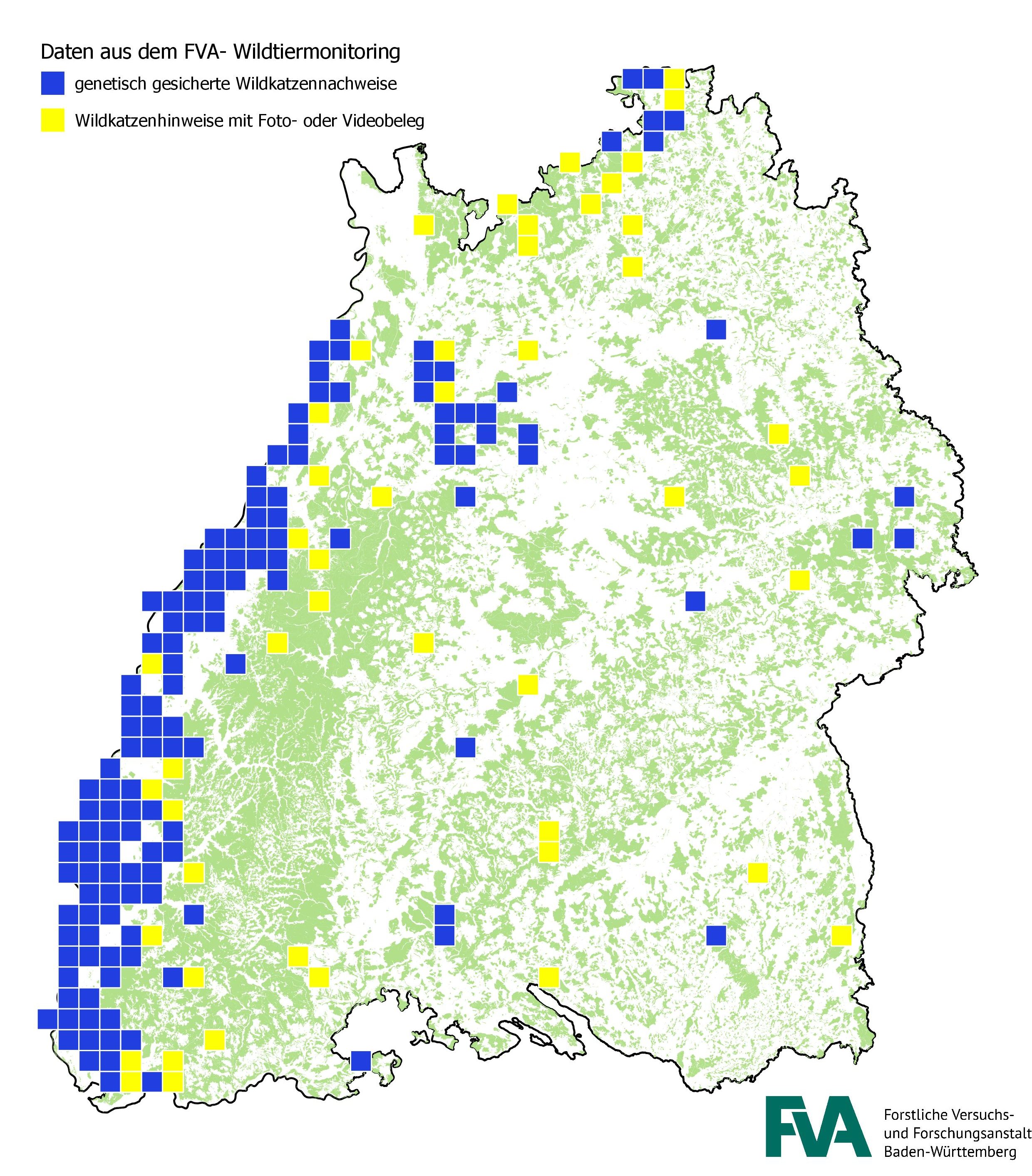 Über die Ursachen der hohen Hybridisierungsrate herrscht noch Unklarheit. Ein Grund könnte die gegenwärtige Ausbreitung der Wildkatze in Baden-Württemberg sein (Abb. 6). So wird ein erhöhter Anteil an Hybriden in einer Population häufig nach der Ausbreitung in neue Verbreitungsgebiete und verstärkt an Verbreitungsrändern beobachtet. Hybridisierung könnte so möglicherweise die Besiedelung neuer Gebiete erleichtern, in dem das ausbreitungsschwächere Weibchen in neuen Gebieten zeitweise durch Hauskatzen ersetzt wird.
