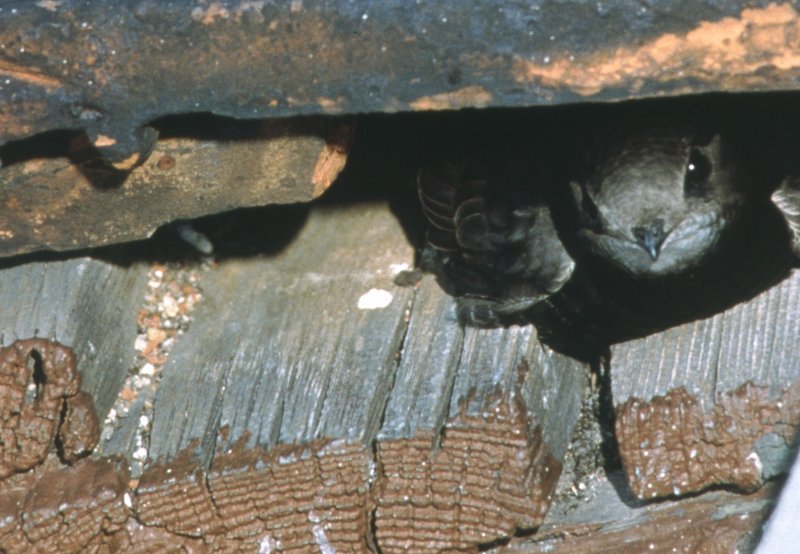 Abb. 2: Der ursprünglich in Felsnischen und Baumhöhlen brütende Mauersegler sucht sich seine Nistplätze heute meist in Siedlungen (Foto: R. Groß).
