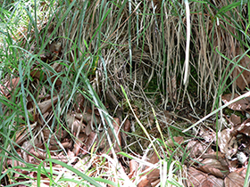 Abb. 3 – Die Nester werden am Boden gut versteckt unter grasartiger Vegetation gebaut. Dieses Foto ist nach der Brutsaison entstanden. Foto: Gilberto Pasinelli