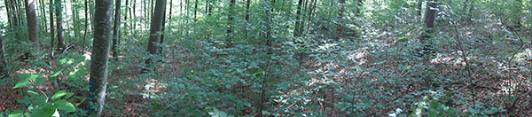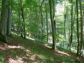 - von Buche und Eiche dominierte Wälder mit einem weitgehend geschlossenen, homogenen Kronendach,