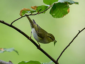 Abb. 1 - Der Waldlaubsänger ist in der Schweiz und in weiten Teilen Europas gefährdet. Foto: Marcel Burkhardt