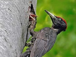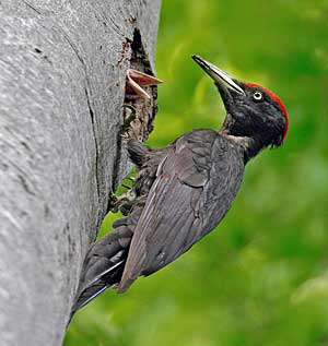 Abb. 1 - Der Schwarzspecht: Die grösste europäische Spechtart ist in der Schweiz weit verbreitet und häufig. Foto: Ruedi Aeschlimann