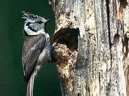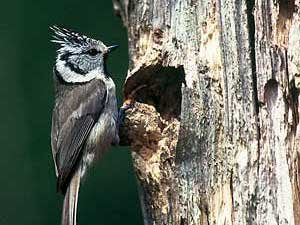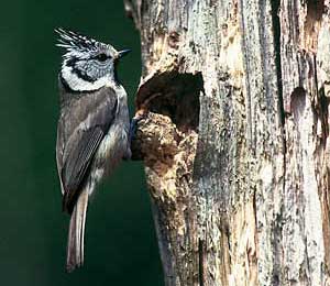 Abb. 2 - Die Haubenmeise nistet in Höhlen, kann diese aber nur selbst bauen, wenn morsches Holz an älteren Bäumen vorhanden ist. Foto: Tero Niemi
