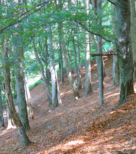 Abb. 5. Grosse zusammenhängende Misch- und Laubwälder mit hohem Totholzanteil und dicken, alten Bäumen bilden den Lebensraum des Schwarzspechtes. Fotos: Thomas Reich (WSL)