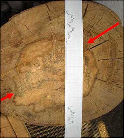 Um dieser Frage nachzugehen wurde an Initialhöhlen des Schwarzspechts der Holzwiderstand mit dem Resi 400 ermittelt (Abb. 2). Die erhaltenen Messstreifen verglichen die Forscher mit denen benachbarter Referenzbuchen gleicher Dimension und Klasse. Damit wurden folgende Hypothesen getestet: