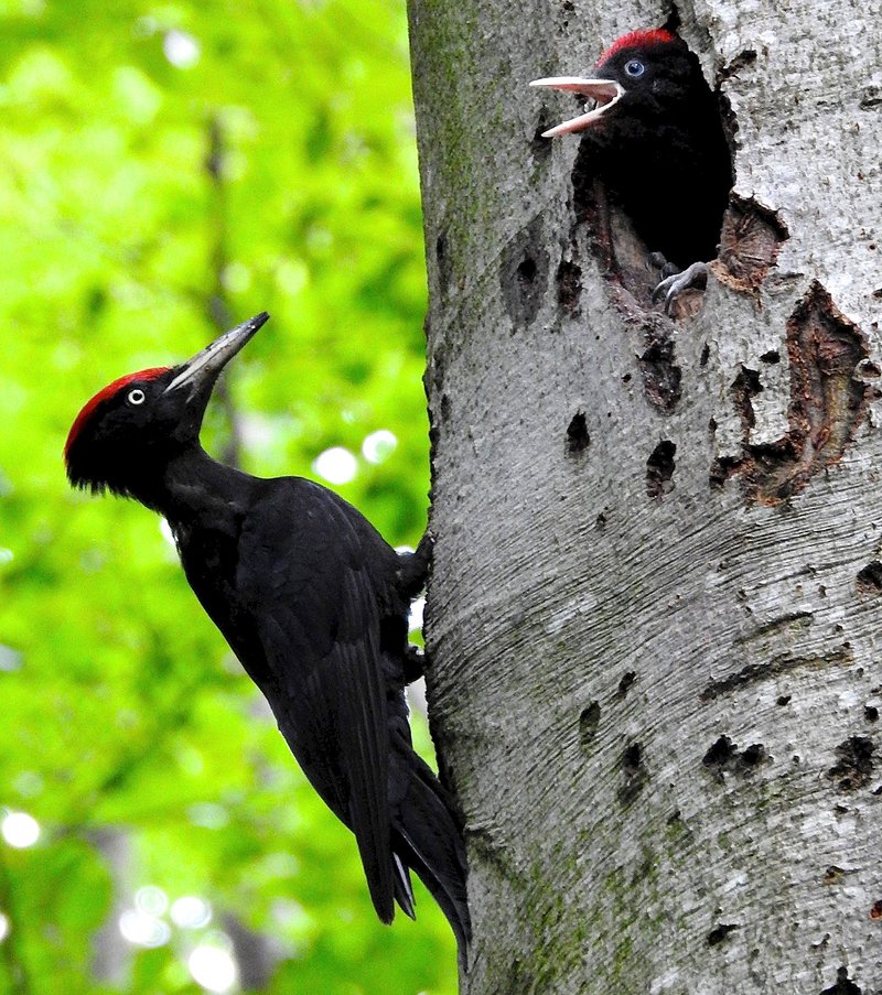 - Der Schwarzspecht bevorzugt Bäume mit Kernfäulen zur Höhlenanlage.