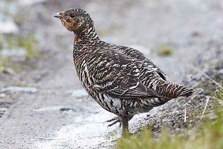 | Auerhuhn | Jura, nördliche Voralpen, östliche Alpen | 450 bis 500 Hähne | stark gefährdet |