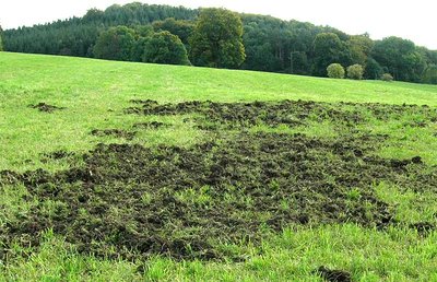 Diese rapide Vermehrung des Schwarzwildes bringt Probleme mit sich. Am deutlichsten bekommen dies Landwirte, Jäger und Waldbesitzer zu spüren, auf deren Flächen die Tiere bei ihrer Nahrungssuche Schäden verursachen (Abb. 3). Für viele Jagdreviere findet sich aufgrund der hohen zu erwartenden Wildschäden bereits jetzt nur noch schwer ein Pächter. Betroffen sind aber nicht nur diese Gruppen: Die Wildschweine haben längst die Städte besiedelt, fühlen sich dort "sauwohl" und verursachen in diesem befriedeten Bereich immer mehr Probleme. Auch sind die schweren Verkehrsunfälle mit Schwarzwildbeteiligung angewachsen. Schließlich wächst mit der Ausbreitung (Abb. 4 und 5) und Zunahme der Bestände auch das Risiko der Übertragung von Schweinepest.