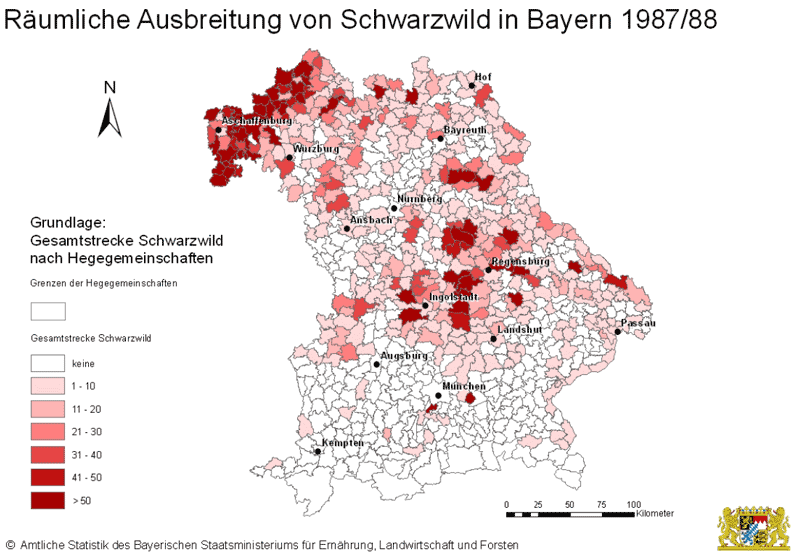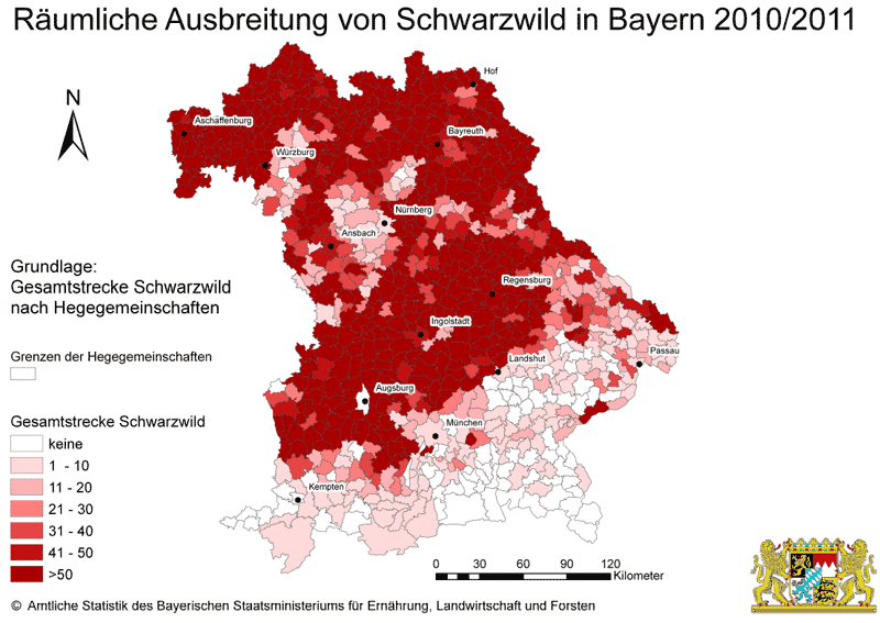 Die Schwarzwildstrecken haben sich in den letzten 30 Jahren in Bayern verzwanzigfacht. Wurden im Jagdjahr 1980/ 1981 nur knapp 3.000 Schwarzkittel erlegt, so waren es 2010/ 2011 über 60.000 Tiere (Tab. 1) – das bis dahin zweithöchste im Freistaat erreichte Ergebnis.
