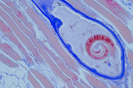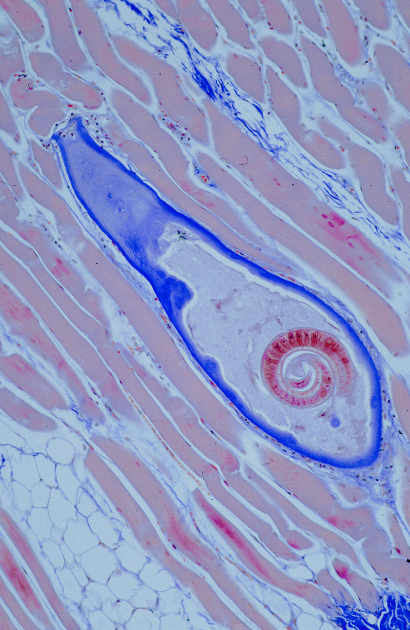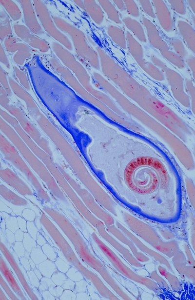 Auch wenn der Jäger keine bedenklichen Merkmale feststellt, muss beim Wildschwein jedes Alters, auch beim Frischling in Spanferkelgröße, eine gebührenbehaftete Untersuchung der Muskulatur auf Trichinen durchgeführt werden. Die Anmeldung dazu kann am Wohnort des Jagdausübungsberechtigten, aber auch in einem anderen Beschaubezirk erfolgen, wohin der Tierkörper verbracht wird. Die Entnahme der Proben aus dem Zwerchfell und vom Vorderlauf ist eine amtliche Handlung und somit vom Untersucher vorzunehmen. Vor Abschluss der Untersuchung und der Beurteilung "trichinenfrei" darf das Wildbret nicht verwertet werden.
