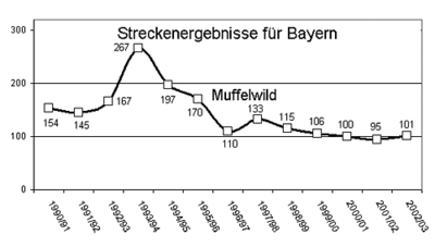 Abb. 1: Streckenergebnisse Muffelwild für Bayern (Quelle: Bayerisches Staatsministerium für Ernährung, Landwirtschaft und Forsten).
