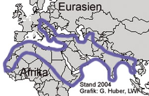 Abb. 1: Verbreitungsgebiet des Goldschakals (2004).