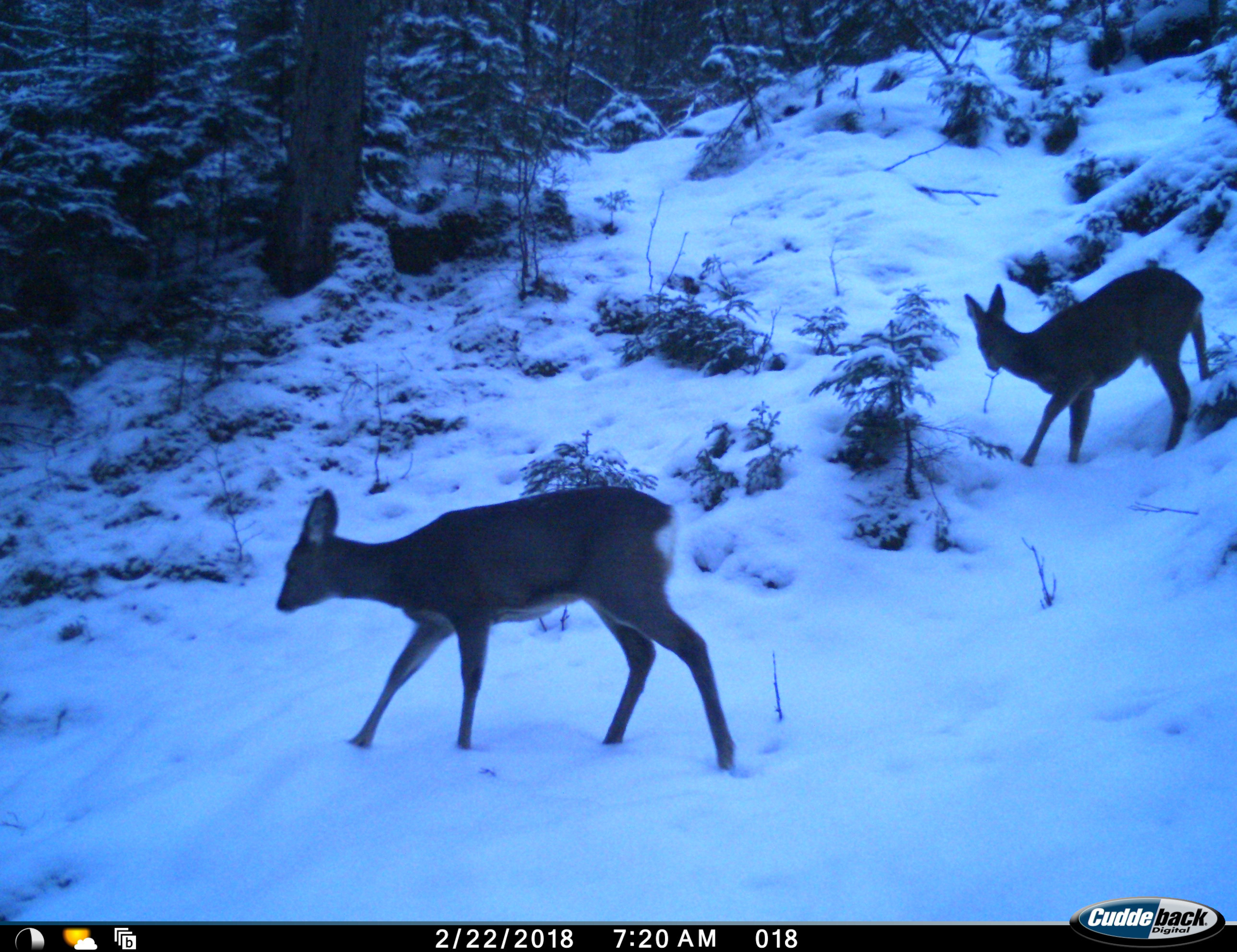 Auch im Zusammenhang mit der Waldverjüngung und der Vermeidung von Wildschäden ist die Kenntnis der saisonalen Raumnutzung unerlässlich. Besonders in den verbisssensiblen Jahreszeiten, wie Spätwinter und Frühsommer, können sich Nutzungsschwerpunkte einzelner oder mehrerer Schalenwildarten konzentrieren, was durch die Fotofallen erfasst werden kann.