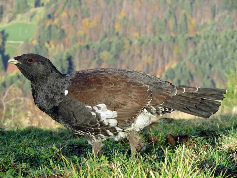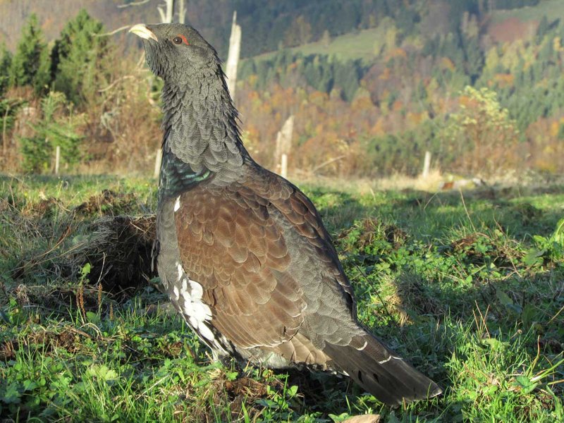 Abb. 1: Die Auerhuhnpopulation im Schwarzwald hat stetig abgenommen. Das Auerhuhn (Tetrao urogallus) benötigt offene, strukturreiche Nadelmischwälder, was dem heutigen Trend hin zum Dauerwald und zu stabilen und vorratsreichen Waldbeständen widerspricht. (Fotos: Coppes/FVA)