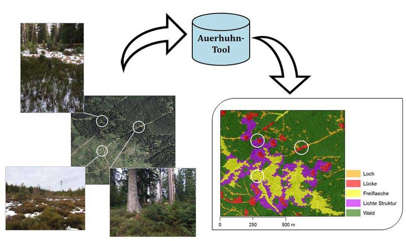 Schon jetzt steht fest, dass durch die Auswertungen des Auerhuhn-Tools die naturraumbezogene Planung und die Durchführung und Kontrolle von großflächigen Maßnahmen für das Auerhuhn erst möglich werden. Diese Luftbildauswertung wird in den nächsten Jahren auch für weitere Arten in Baden-Württemberg angewandt. Fernerkundung wird als Methode zunehmend wichtig, um Waldstruktur großräumig abbilden zu können und dadurch Naturschutzmaßnahmen besser in die Waldwirtschaft integrieren zu können. Die Luftbildauswertungen kann somit ein Beitrag zum Schutz des Auerhuhns und anderer bedrohter Arten leisten.
