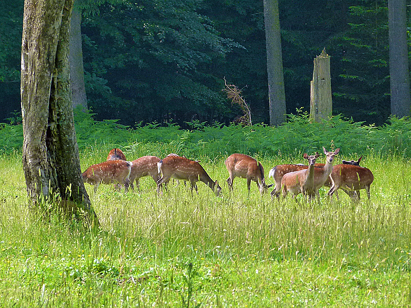 - Es ist davon auszugehen, dass der aktuelle Frühjahrsbestand im zurzeit ruhenden Bewirtschaftungsbezirk bei über 3.000 Stück und damit deutlich zu hoch liegt. Für die überschlägliche Ermittlung dieses Gesamtbestandes wurden die Sichtungen auf der Gesamtfläche zu Grunde gelegt. Diese Fläche beinhaltet auch ca. 3.000 ha im "Freigebiet". Somit ist gewährleistet, dass in die Berechnung auch dünn besiedelte Bereiche mit einfließen. Zu diesem Bestand kommen dann noch die im "Freigebiet" lebenden Sikas hinzu.