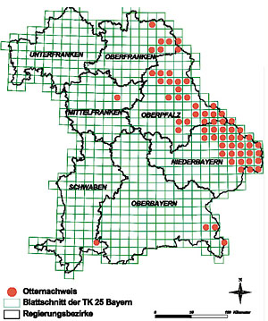 Die Nachweise aus der Oberpfalz und Oberfranken dürften auf Einzeltiere zurückzuführen sein (Mau 2000). Die "bayerischen Tiere" bilden dabei nur einen Ausschnitt aus der Böhmerwaldpopulation, die sich weit nach Tschechien und Österreich hinein erstreckt. Neben dem totalen Schutz des Fischotters trugen vor allem die Reduktion von Umweltgiften (PCB-Problematik) sowie flankierende Artenschutzmaßnahmen (Artenhilfsprojekt Fischotter, Arbeitsgemeinschaft Fischotterschutz) zur Erholung der Bestände bei. Wichtig war in diesem Zusammenhang eine intensive Öffentlichkeitsarbeit mit einem Fokus auf den betroffenen Interessensgruppen der Fischer und Jäger. Darüber hinaus hat auch die fischottergerechte Gestaltung von Brücken zu einer Reduktion von Verkehrsopfern beigetragen.