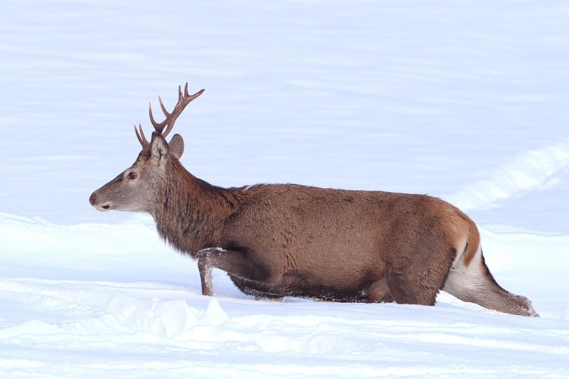Abb. 2: Rothirsch im Hochschnee (Foto: H. J. Fünfstück, www.5erls-naturfotos.de).