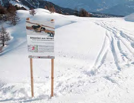 Abb. 2. Wichtige Sensibilisierungsarbeit: Plakate entlang der Piste informieren über Sinn und Zweck der Wildruhezone für Birkhühner. Noch zeigen sich nicht alle Sporttreibenden einsichtig. Foto: Raphal Arlettaz