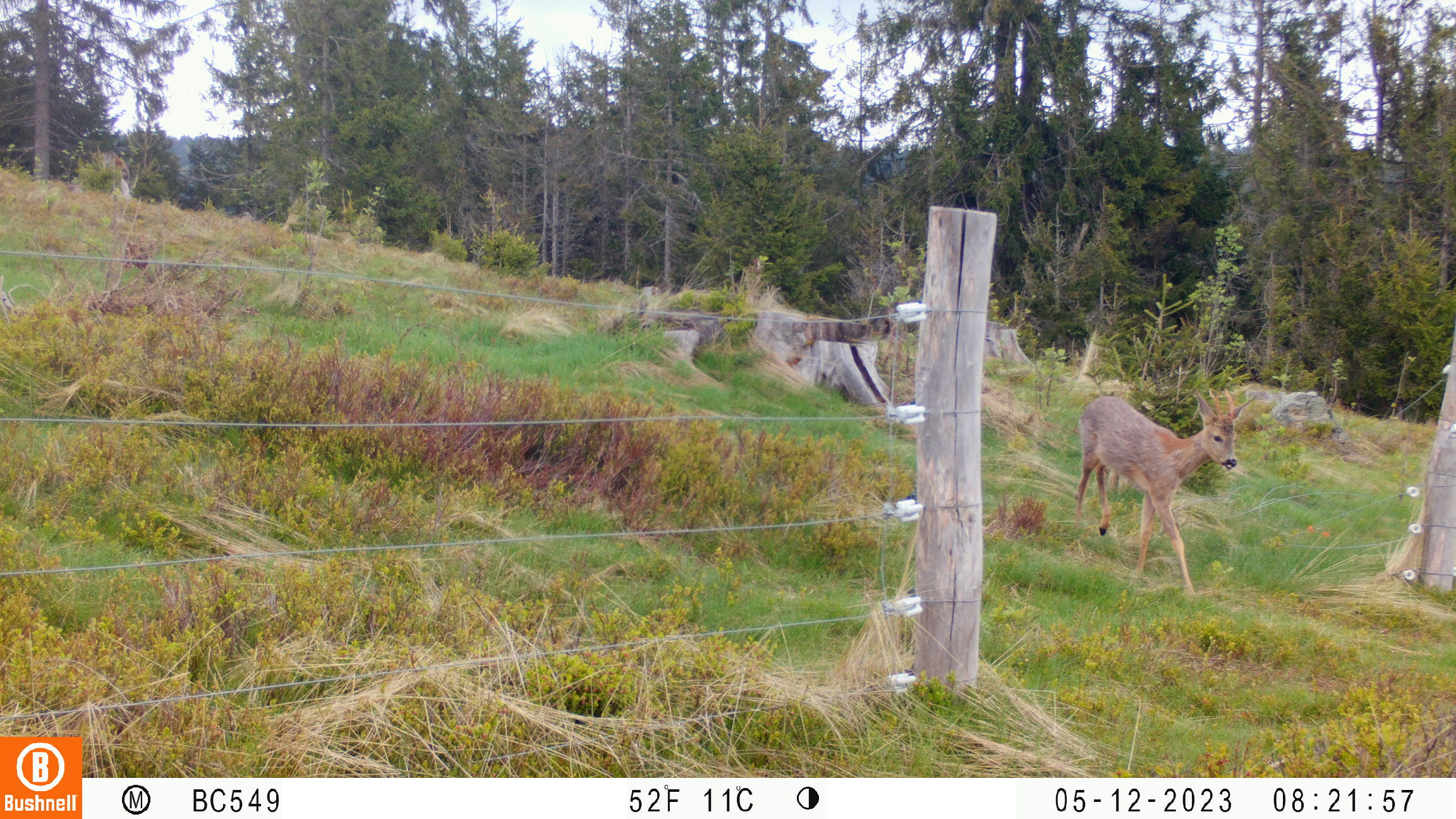 Zur Erfassung des Wildtierverhaltens wurden auf allen Untersuchungsflächen Wildtierkameras entlang der Weidezäune installiert. Diese dokumentierten Annäherungen durch Wildtiere, Querungsversuche und erfolgreiche Querungen sowie die Anwesenheit von Wildtieren auf den Weideflächen im Jahresverlauf.