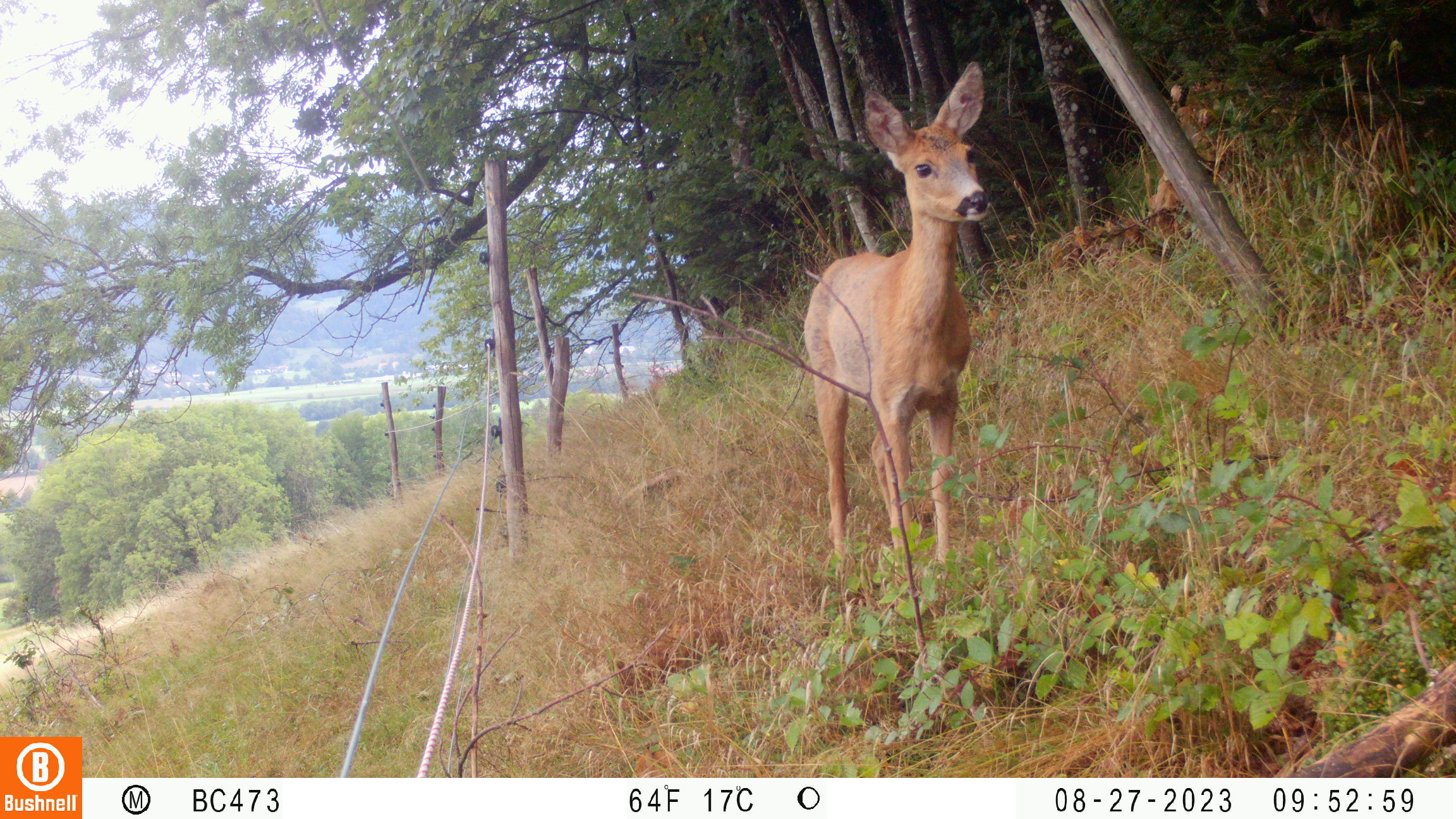 Die Kameras wurden an Zaunpfosten oder Bäumen angebracht und lieferten über die gesamte Projektdauer hinweg kontinuierlich Aufnahmen. So konnte das Verhalten verschiedener Wildarten unter realen Praxisbedingungen erfasst werden.