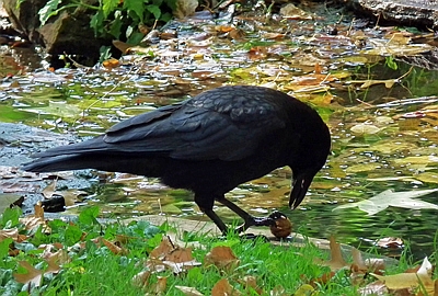 Abb. 4: Rabenkrähe mit einer Walnuss (Juglans regia). Foto: User 4028mdk09, Wikimedia Commons