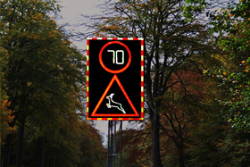 Wildwarnanlage mit radargesteuerten Wildwarndisplays