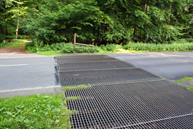 Abb. 3: Um ein unkontrolliertes Auswechseln des Wildes zu vermeiden, wurden diese Gitterroste in die Straße eingelassen. Foto: I. Hucht-Ciorga