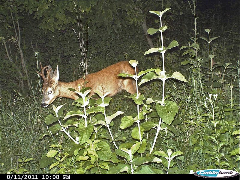 Abb. 7: Ein Rehbock überquert eine Wildbrücke, dokumentiert von einer Fotofalle.