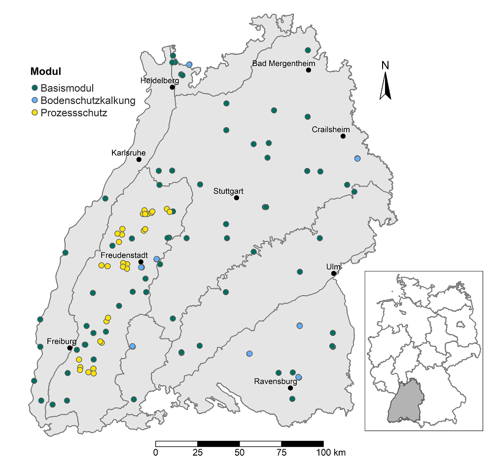 Das Forschungsprojekt Biodiversität von Waldböden: Bodenfauna an der FVA in Kooperation mit der Professur für Bodenökologie der Albert-Ludwigs-Universität Freiburg und dem Senckenberg Museum für Naturkunde Görlitz bildet den Auftakt für ein langfristiges Monitoring in Baden-Württemberg. In bislang vier Probekampagnen wurden insgesamt erfasst: